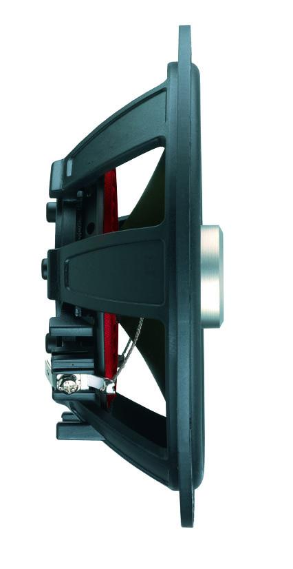 Tieftöner mit extrem flachem Kunststoffchassis für optimale Verbaubarkeit in Fahrzeugschächten mit geringer Einbautiefe.